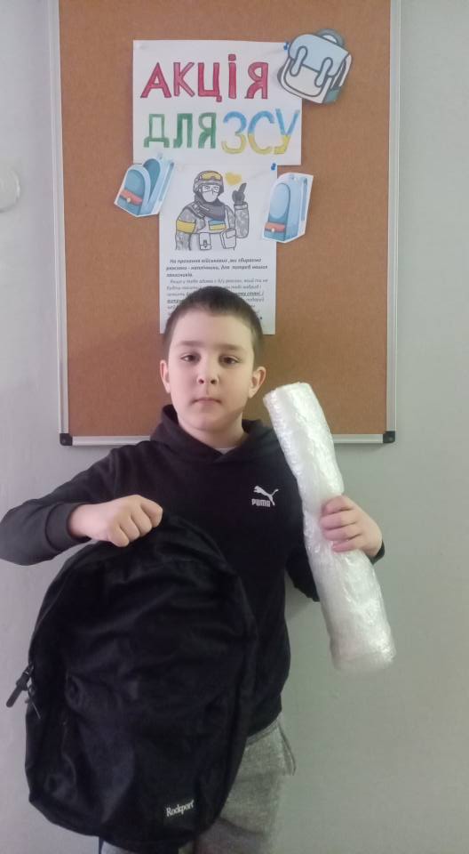 Усі зібрані рюкзаки та плівку передали волонтерам, які доставлять допомогу безпосередньо на фронт.