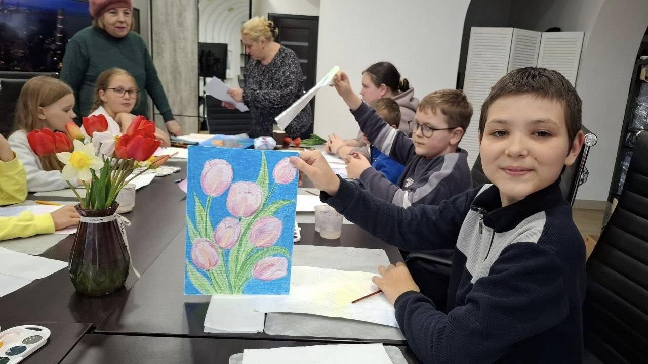 Головними героями творчого заняття стали тюльпани — символи весни, оновлення та краси. Здавалося б, прості квіти, але їхня форма і багатство відтінків відкрили перед дітьми безмежний простір для експериментів. На аркушах з’являлися ніжно-рожеві бутони, яскраво-жовті пелюстки, глибокі червоні відтінки — кожен малюнок був унікальним, як і його автор.