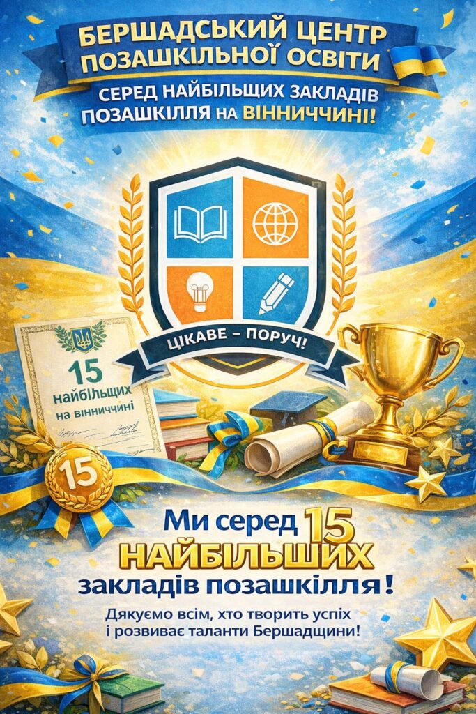 У місті Бершадь з’явився ще один вагомий привід для гордості: Бершадський центр позашкільної освіти офіційно увійшов до переліку 15 найкращих закладів Вінницької області. Відповідне рішення затвердило Міністерство освіти і науки України, оновивши список провідних позашкільних установ регіону.