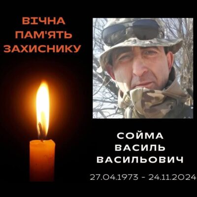 Зі скорботою повідомляємо, що 24 листопада 2024 року героїчно загинув Сойма Василь Васильович, солдат Збройних Сил України. Прощання з Героєм відбудеться завтра, 20 серпня 2025 року: Мешканців громади просять утворити живий коридор шани на останньому шляху нашого Захисника. Вічна пам’ять і слава Герою!Слава Україні!