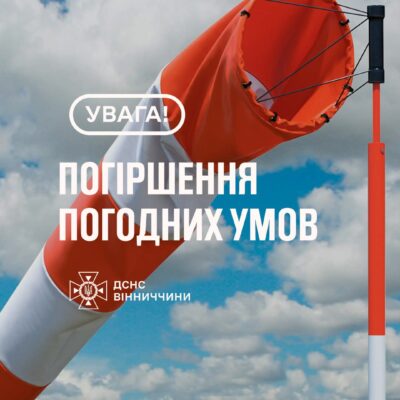 Вінницький обласний центр з гідрометеорології попереджає про погіршення погодних умов 26 червня. За прогнозами синоптиків, у Вінницькій області та обласному центрі очікуються пориви вітру 15-20 м/с. І рівень небезпечності (жовтий). Такі погодні умови можуть спричинити ускладнення руху транспорту, а також створити труднощі для роботи енергетичних і комунальних підприємств, будівельної галузі. Фахівці закликають жителів та гостей […]