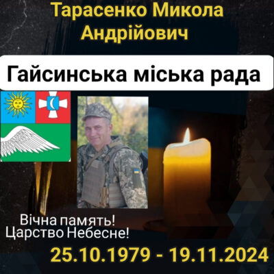У Гайсинському районі з великою скорботою повідомляють про загибель молодшого сержанта, старшого навідника 1-го мінометного розрахунку 2-го мінометного взводу 2-го мінометної батареї військової частини А 2896 — Миколи Тарасенка, 1979 року народження. Життя Захисника обірвалося 19 листопада 2024 року неподалік від населеного пункту Новоолексіївка, Покровського району, Донецької області. Протягом майже 15 місяців Миколу Андрійовича вважали зниклим […]