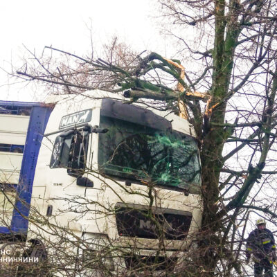 У Бершаді через негоду вантажівка зіткнулася з деревом