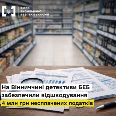 Детективи Територіального управління Бюро економічної безпеки у Вінницькій області завершили досудове розслідування у справі про умисне ухилення від сплати податків керівником підприємства роздрібної торгівлі. За даними слідства, директор товариства, яке здійснює продаж продуктів харчування, напоїв і тютюнових виробів через власну мережу супермаркетів, використовував схему зі списанням зіпсованих товарів без нарахування податку на додану вартість. Це […]