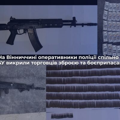Поліція та СБУ зупинили незаконні продажі автоматів і набоїв у Гайсинському районі. Оперативники поліції Вінницької області спільно з СБУ викрили двох чоловіків, 41 та 44 років, які незаконно збували автомати та набої різного калібру за схемою «з рук в руки». Суми замовлень коливалися від 15 до 160 тисяч гривень. Під час слідчих дій правоохоронці вилучили […]
