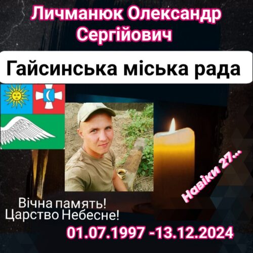 31 жовтня 2025 року Гайсинська громада попрощалася з мужнім захисником, патріотом та воїном – Володимиром Івановичем Ткачуком. Старший солдат загинув у бою 22 жовтня 2025 року поблизу населеного пункту Сінне Сумського району Сумської області, виконуючи військовий обов’язок і захищаючи суверенітет України. Про це повідомляє Гайсинська міська рада. Володимир Ткачук народився 1 березня 1989 року у […]