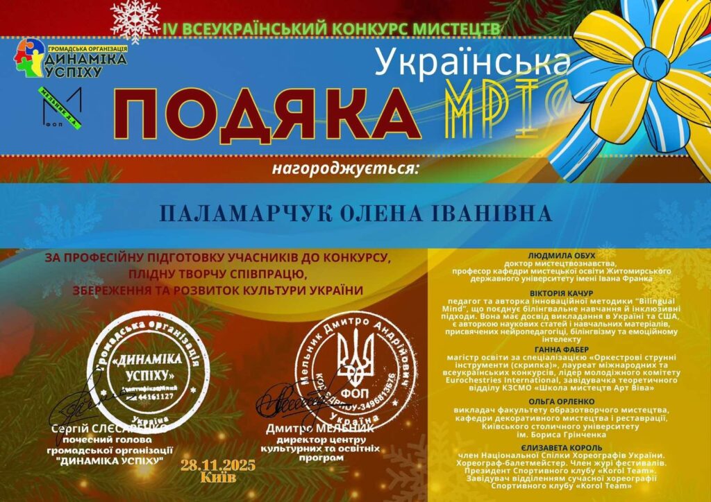 Різдво — це особливий час світла, тепла та душевного затишку. Саме цю атмосферу Вероніці вдалося передати у своїй творчій роботі через гармонійне поєднання кольорів і настрою. Висока оцінка журі стала гідним визнанням її таланту, старанності та любові до мистецтва.