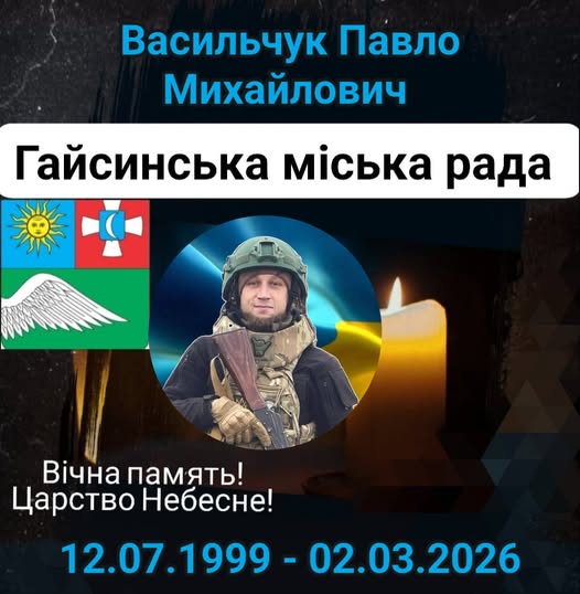 Весна принесла до Гайсинської громади важку звістку про непоправну втрату. На щиті до рідного дому повертається Захисник України, корінний гайсинчанин, молодший сержант взводу та корегування роти ударних безпілотних авіаційних комплексів військової частини А 2960 Павло Васильчук.