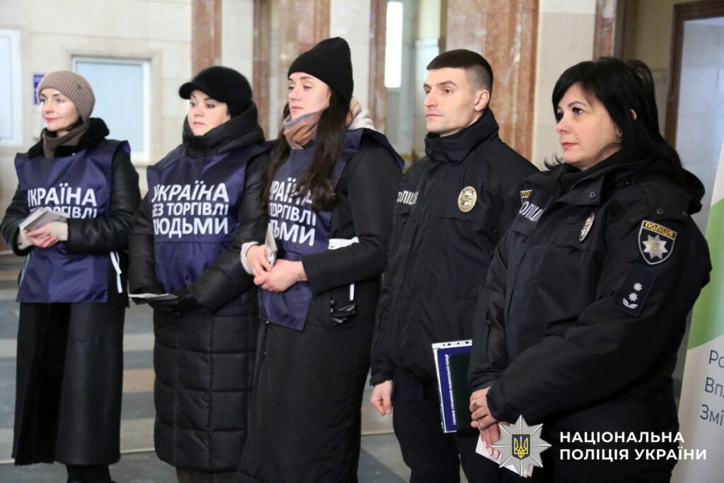На залізничному вокзалі у Вінниці громадяни можуть наочно побачити схеми вербування та дізнатися, як убезпечити себе від небезпечних пропозицій роботи.