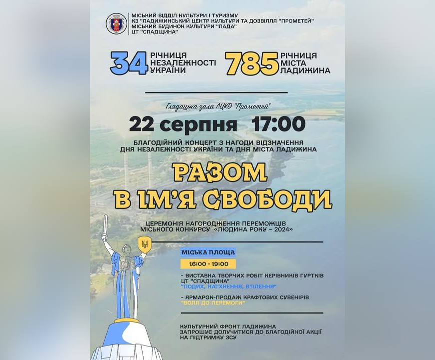 22 серпня 2025 року Ладижин відзначатиме День Незалежності України та День міста низкою святкових заходів.