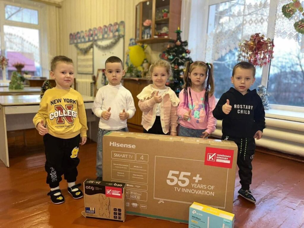 Напередодні новорічних свят у дошкільному закладі «Сонечко» з’явився особливий подарунок — новий сучасний телевізор, який отримала група «Ромашка». Ця добра справа стала можливою завдяки спільним зусиллям батьків та волонтерів «Української команди» Бершадщини, а також особистій підтримці голови організації Віктора Маланчука.