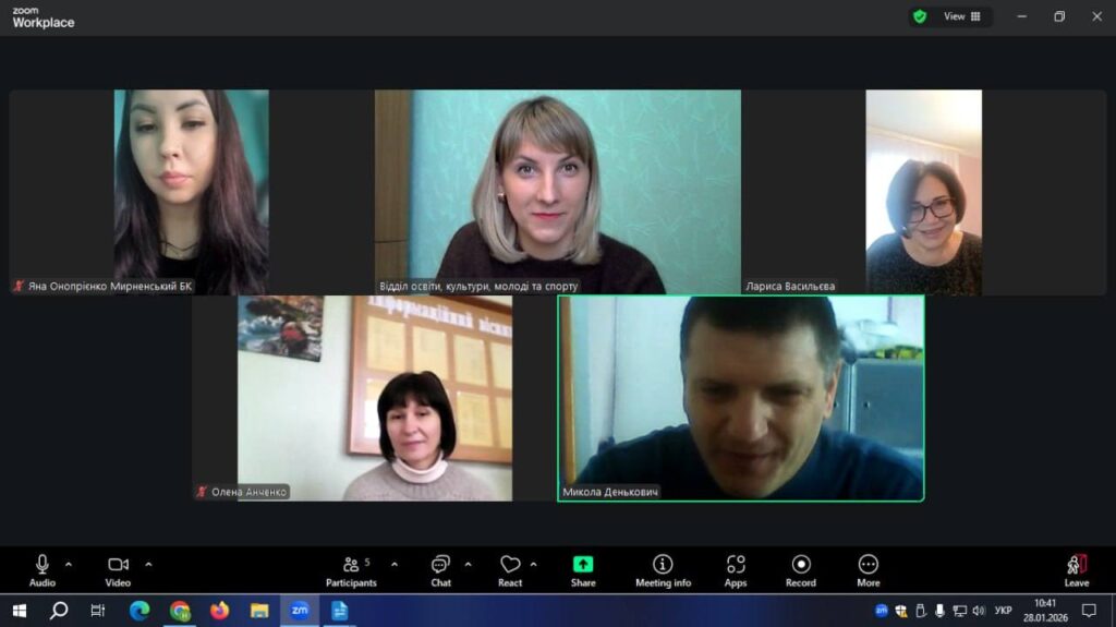 Сьогодні відбулася робоча відеозустріч представників відділу гуманітарної політики Мирненської громади та відділу освіти, культури, молоді та спорту Теплицької селищної ради.