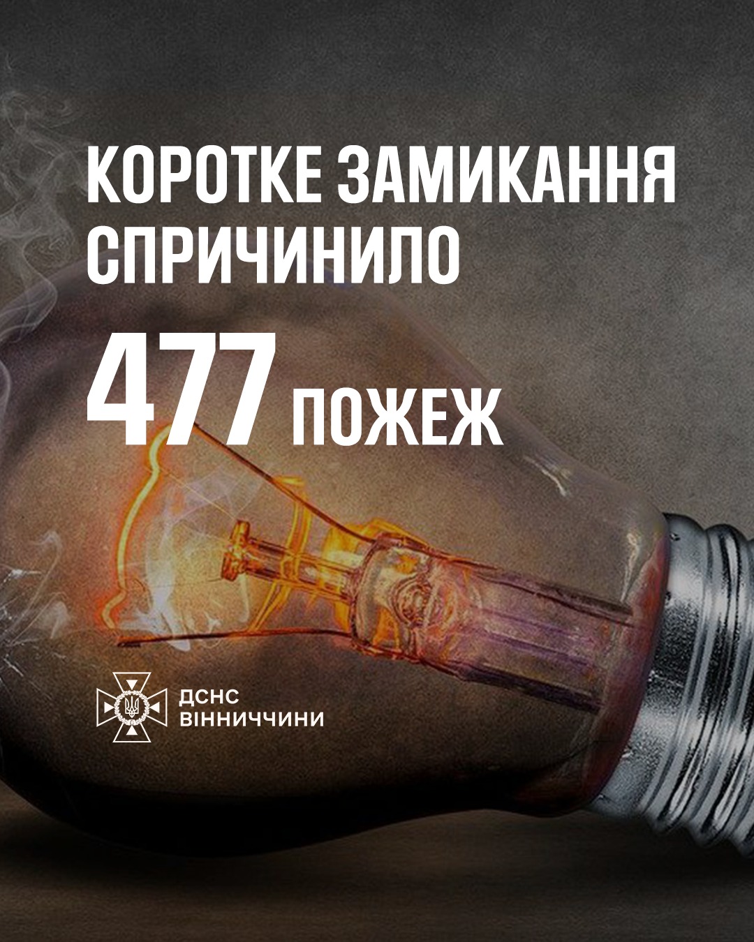 На Вінниччині з початку року сталося 477 пожеж, спричинених коротким замиканням електромережі. У цих інцидентах загинуло 9 людей, ще 20 отримали травми. Про це повідомляє ДСНС України у Вінницькій області. Такі показники свідчать про серйозність проблеми та необхідність неухильного дотримання правил пожежної безпеки у побуті.