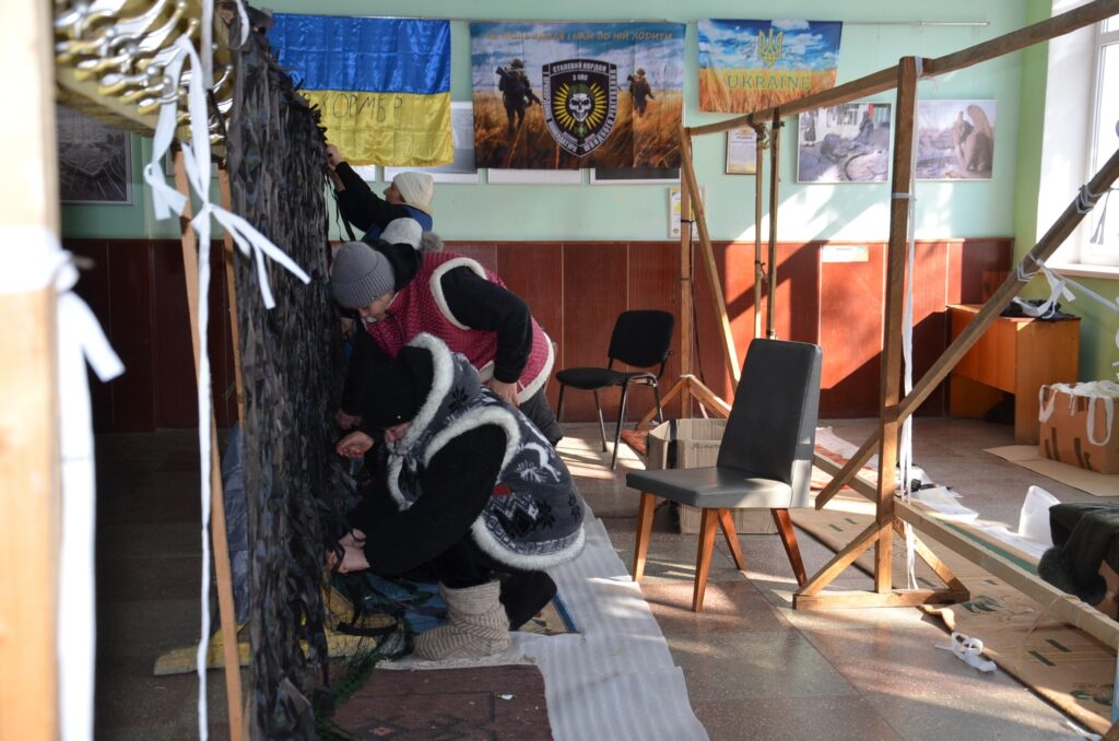 Волонтерки села невтомно плетуть маскувальні сітки та підтримують військових щоденною працею.