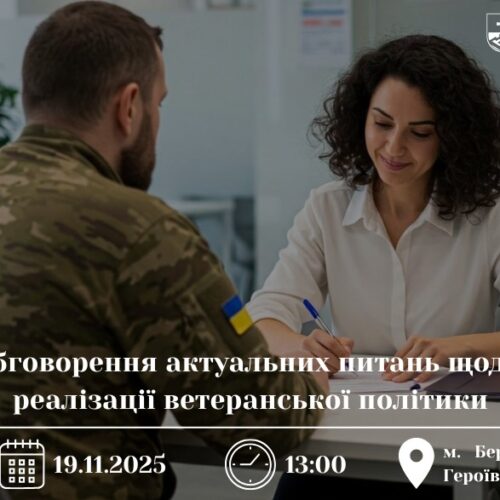 19 листопада громада матиме можливість особисто обговорити ключові питання ветеранської політики з представниками обласних структур. Відділ соціального захисту та охорони здоров’я населення Бершадської міської ради оголошує про проведення змістовної та важливої зустрічі, спрямованої на зміцнення підтримки ветеранів та родин Захисників України. Захід відбудеться 19 листопада 2025 року о 13:00 у залі засідань КО «Бершадська ДЮСШ […]