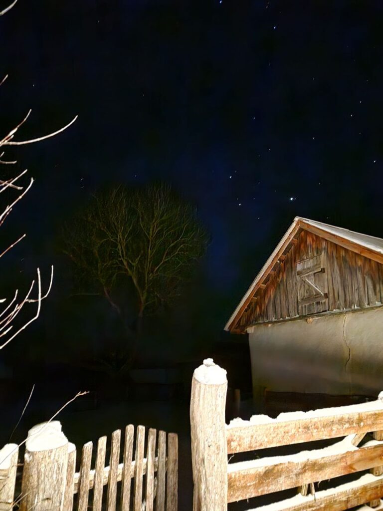 Зараз у Салинцях мешкає менш ніж 20 людей. Уночі тут чути лише вітер, скрип старих воріт і хрускіт снігу під ногами. Світло ліхтаря вириває з темряви дерев’яну огорожу й хату, яка мовчки зберігає сотні невисловлених історій — саме такою постають Салинці сьогодні.