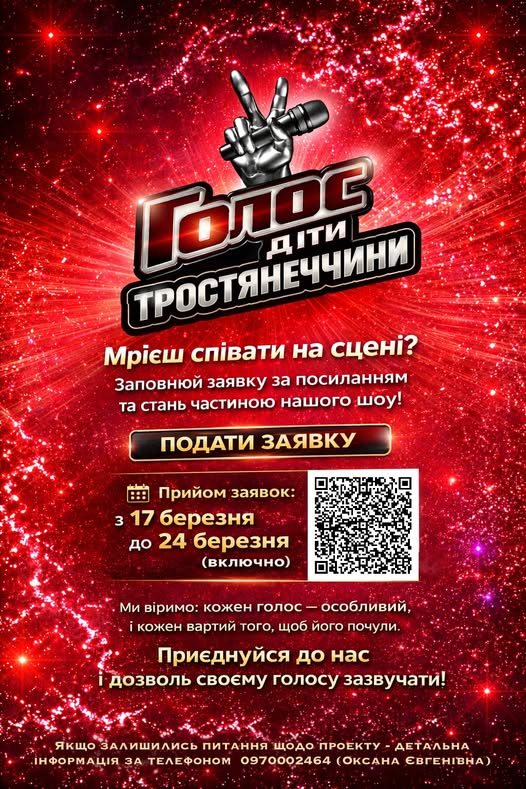 У Тростянецькій громаді готуються до події, яка обіцяє стати справжнім святом дитячого таланту та творчості. Вперше тут запускають унікальний проєкт «Голос-діти Тростянеччини», приурочений до Міжнародного дня голосу.