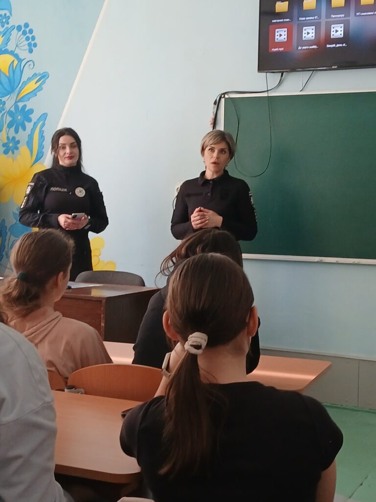 Старшокласники взяли участь в інформаційно-просвітницькому діалозі зі старшим інспектором ювенальної превенції СВГ ВП 2 Гайсинського РУП, капітаном поліції Аліною Войтюк, та старшим інспектором з кадрового забезпечення капітаном поліції Юлією Криворучко.