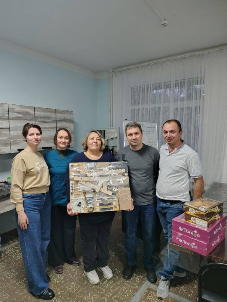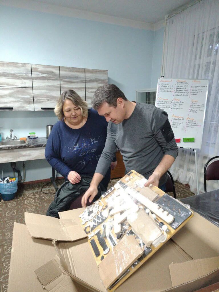 Керівник ладижинського осередку ГО Сергій Зінько придбав і передав бізіборди, бізікуби, спортивний інвентар та нейропалиці. Ці засоби сприяють розвитку мислення, уваги, швидкості реакцій та дрібної моторики у маленьких пацієнтів.