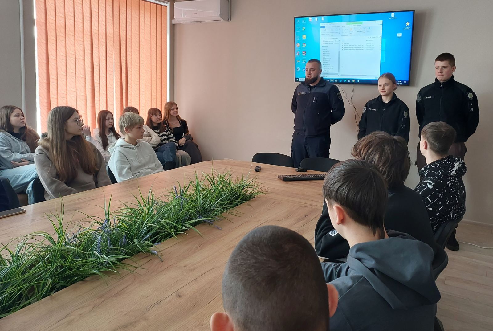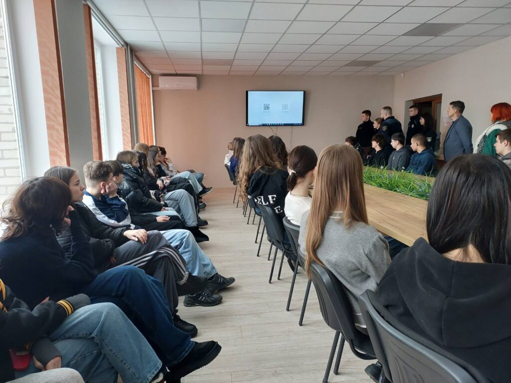 Дев’ятикласники активно долучилися до діалогу, ставили запитання щодо вимог до кандидатів, умов проживання та перспектив професійної реалізації. Гості поділилися власним досвідом навчання, розповіли про щоденні виклики та переваги обраного шляху, наголосивши на важливості відповідальності, патріотизму й готовності служити суспільству.