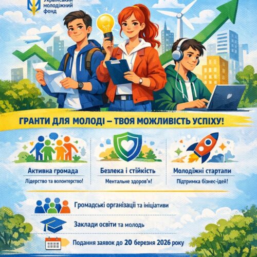 Прийом заявок на бюджетні гранти триватиме до 20 березня 2026 року. В Україні оголошено можливість отримання державної підтримки у формі бюджетних грантів на реалізацію молодіжних проєктів. Програму впроваджує Український молодіжний фонд. Метою грантової ініціативи є створення умов для активної участі молоді у суспільному житті, розвитку її потенціалу та посилення ролі молодіжних ініціатив у громадах. Про […]
