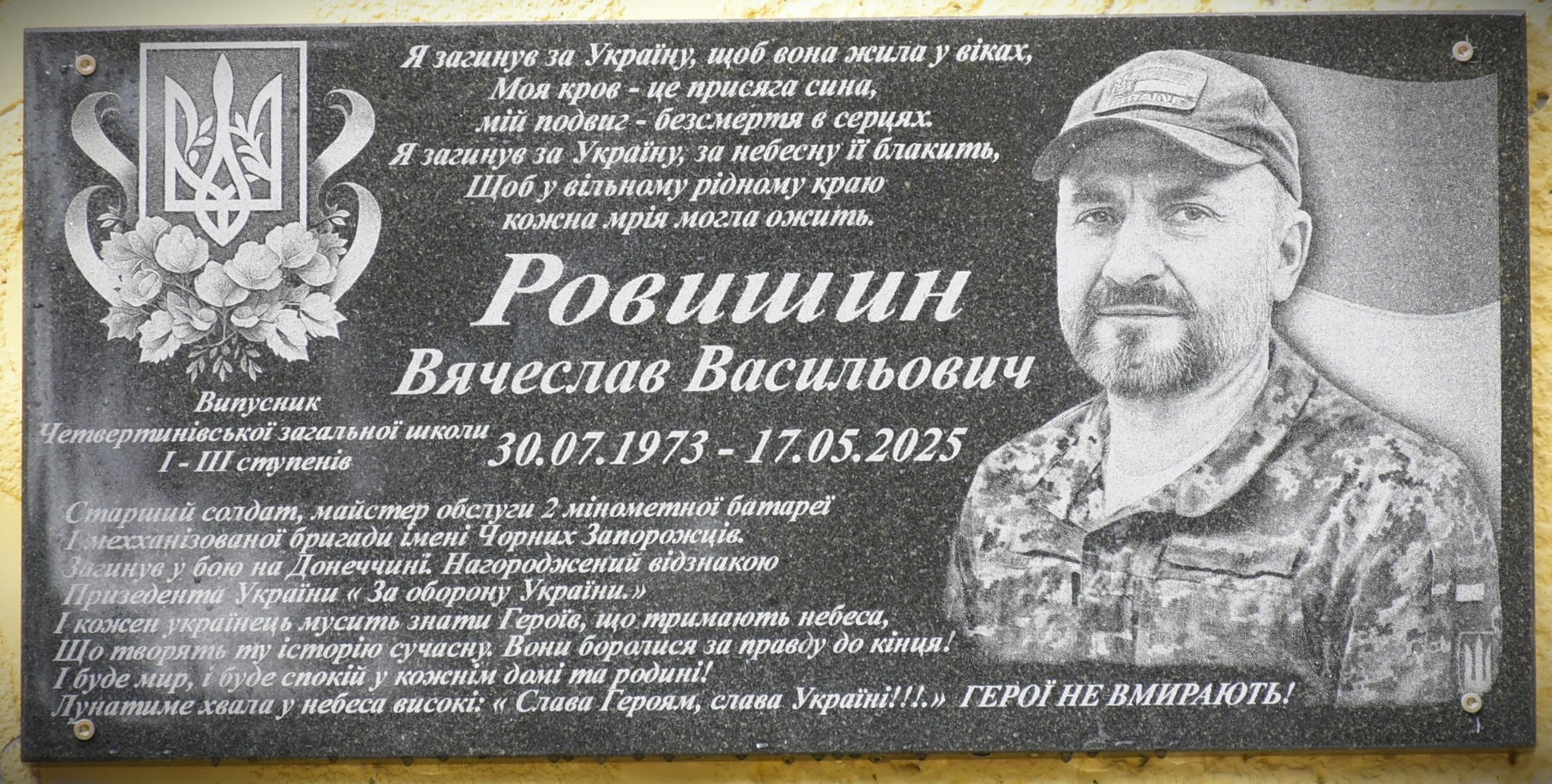 У Четвертинівці відкрили меморіальну дошку Герою України Вячеславу Ровишину