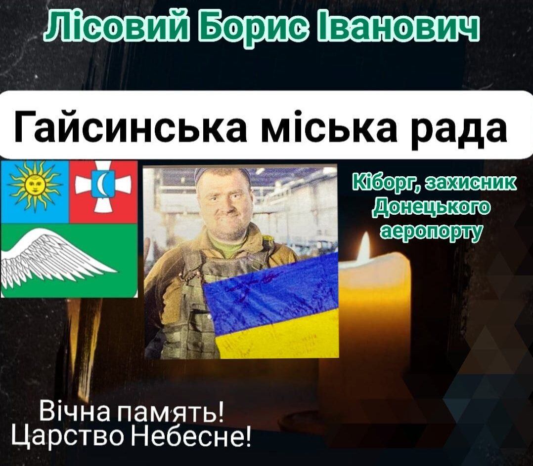 24 серпня 2025 року раптово обірвалося життя захисника України, ветерана російсько-української війни, уродженця Гайсина Бориса Івановича Лісового (1985 р.н.).