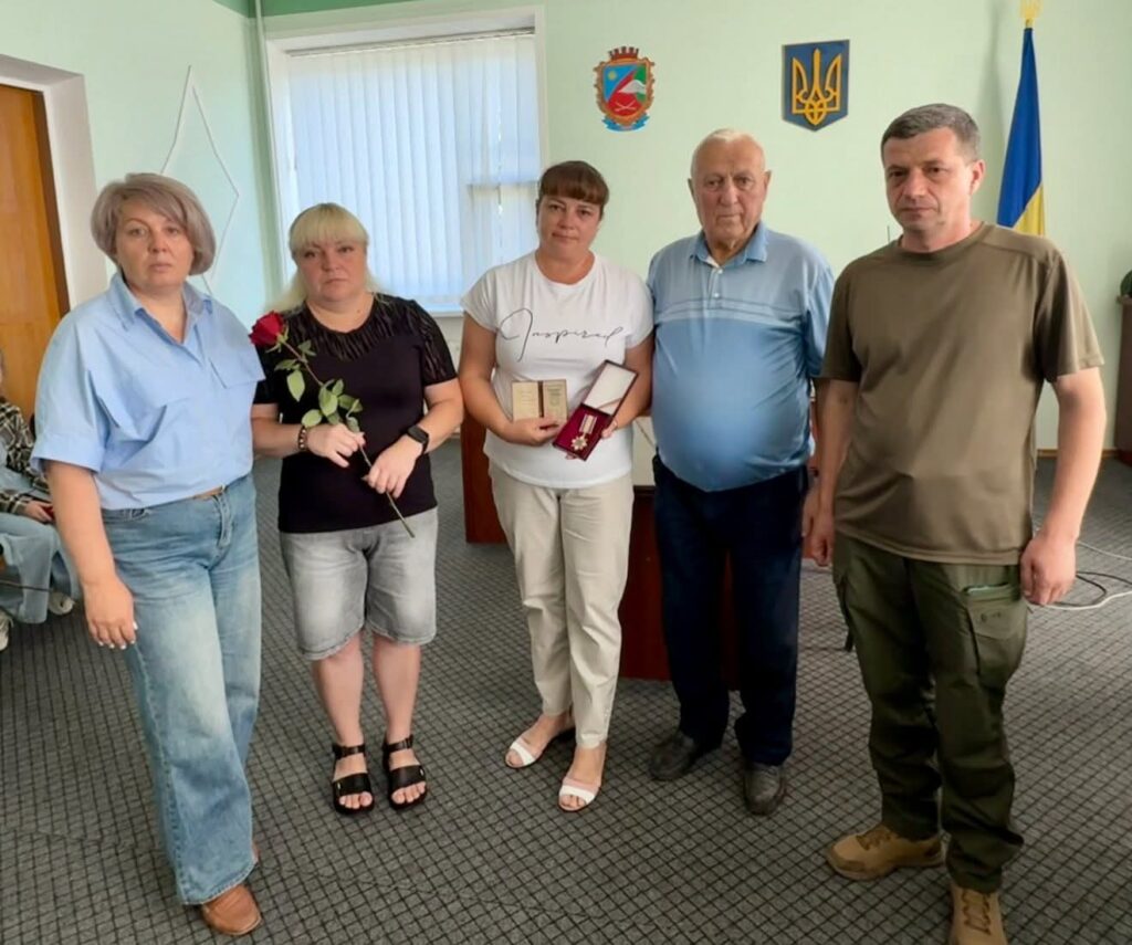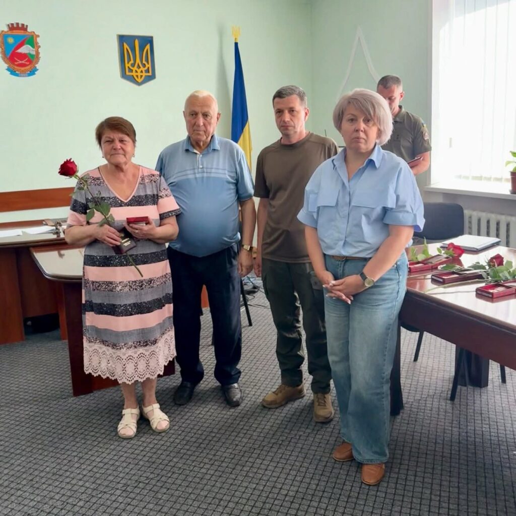 Голова Гайсинської райдержадміністрації Людмила Головашич разом із міським головою Анатолієм Гуком та т.в.о. начальника Гайсинського районного територіального центру комплектування та соціальної підтримки підполковником Василем Іващуком передали нагороди рідним героїв: