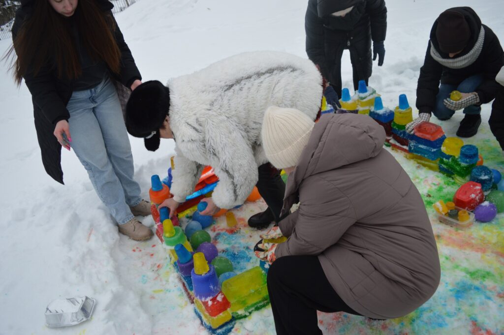 У закладі дошкільної освіти №5 «Факел» м. Гайсина цієї зими панує справжня казкова атмосфера. Завдяки старанням і творчому натхненню педагогів для маленьких вихованців було збудовано справжню льодяну фортецю з кольорових цеглинок — яскраву, незвичну та наповнену дитячим захопленням.