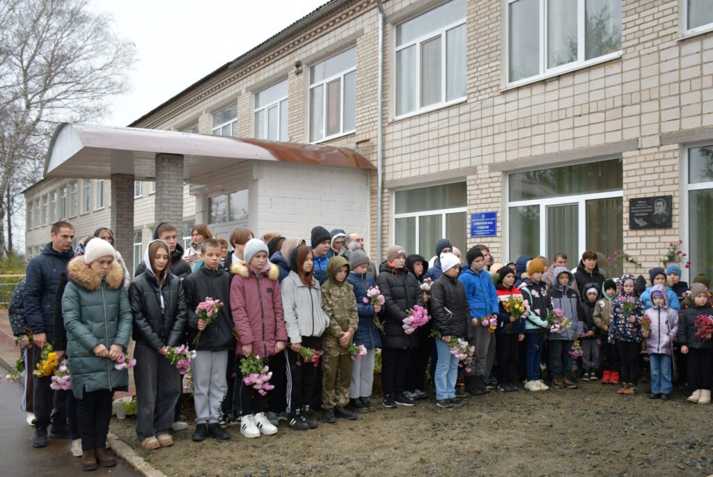 Під час мітингу священник, отець Михайло, освятив пам’ятний знак. Присутні — учні, педагоги, представники громади, військові — поклали квіти та вшанували пам’ять Максима хвилиною мовчання.