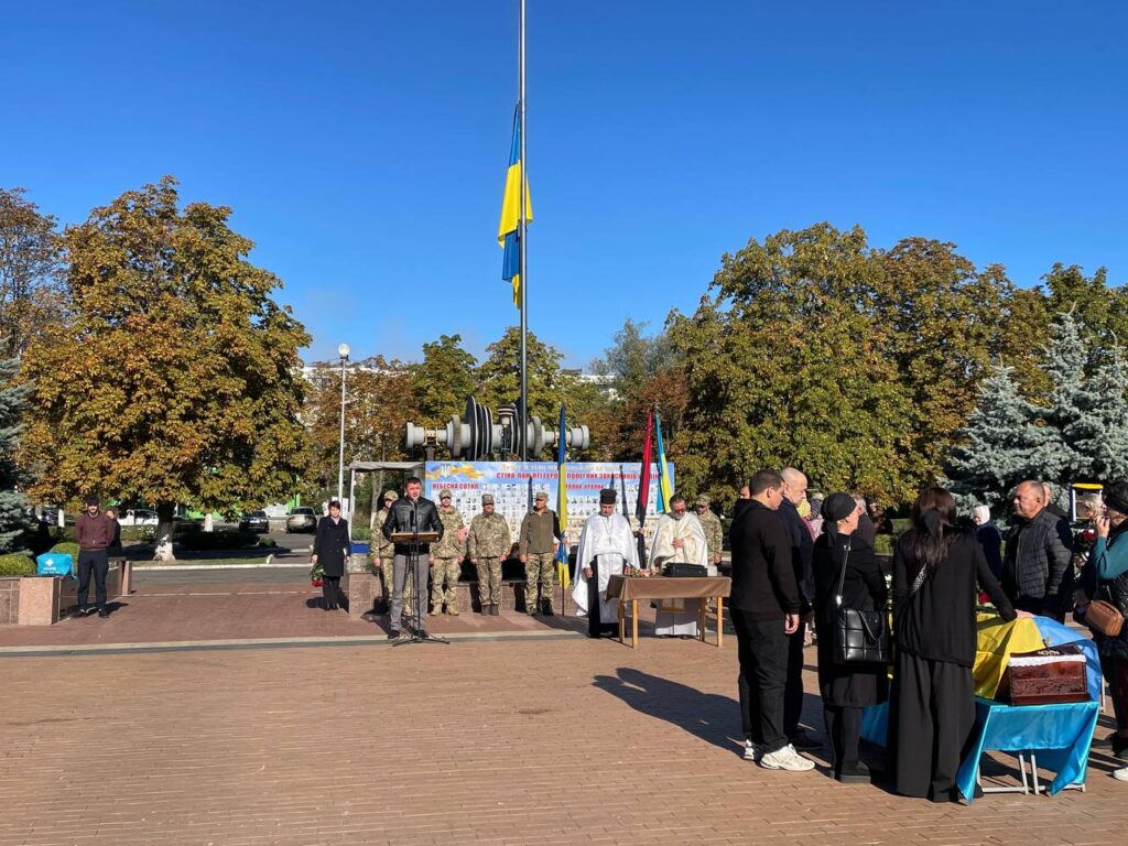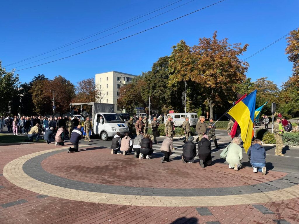 Траурна церемонія прощання з Героєм відбулася на площі Фонтанів у Ладижині. Жителі громади на колінах віддали шану воїну, проводжаючи його в останню путь.