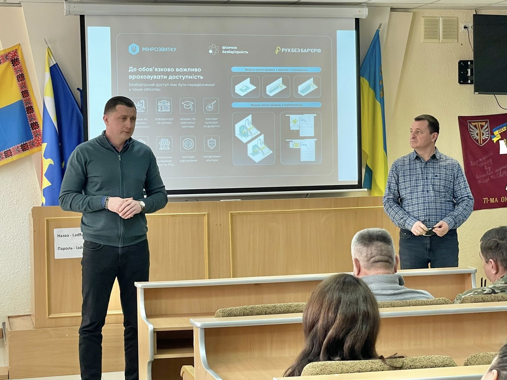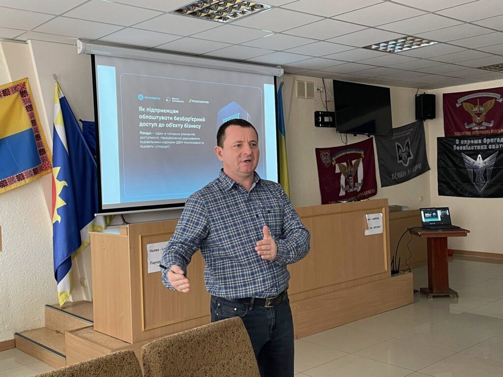 Секретар Ради, головний архітектор міста Олександр Колісніченко, представив матеріали щодо облаштування безбар’єрного доступу до об’єктів бізнесу. Йшлося про правильне встановлення пандусів, технічні вимоги до конструкцій, роботи, що не потребують дозвільних документів, а також альтернативні рішення — підйомники та кнопки виклику. Окрему увагу приділили об’єктам із підвищеною соціальною значущістю.
