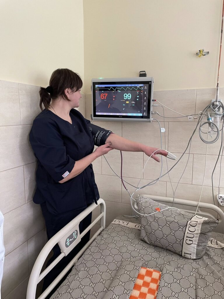Палати оснащені сучасними функціональними ліжками з протипролежневими матрацами, що є надзвичайно важливим для хворих із порушенням рухової активності. Біля кожного ліжка встановлено монітори пацієнта, які в режимі реального часу дозволяють контролювати основні життєві показники: артеріальний тиск, пульс та рівень сатурації кисню. Також у відділенні облаштовано окремий пост медичних сестер для цілодобового нагляду та оперативного реагування на зміни стану пацієнтів.