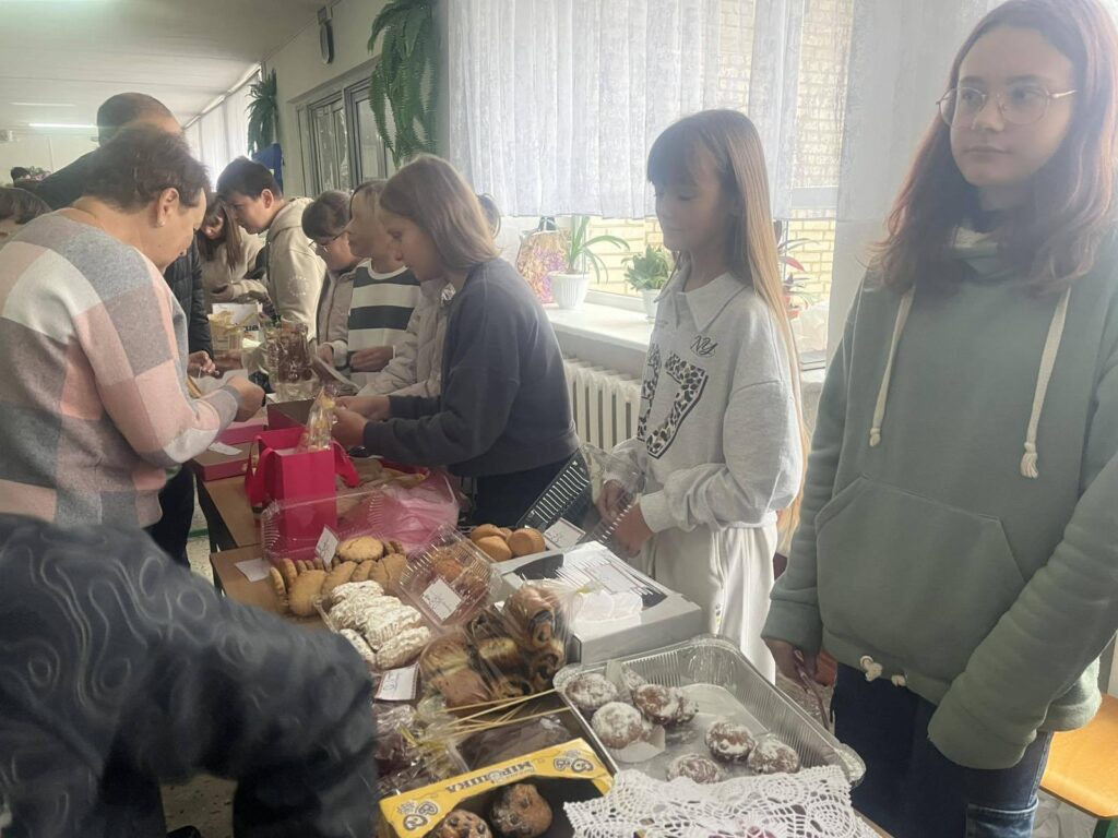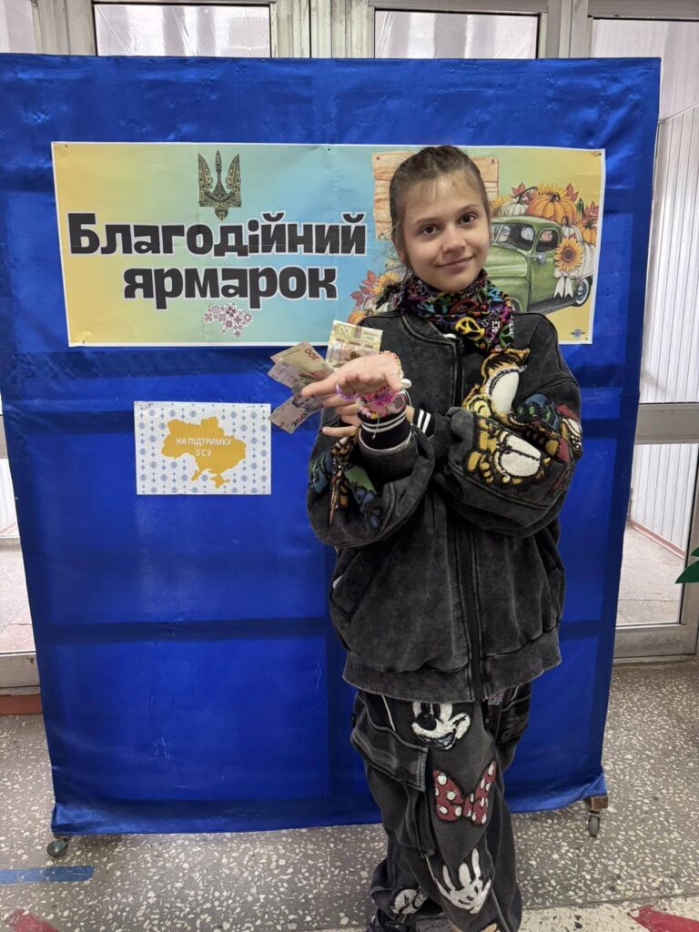 До доброї справи долучилися учні, вчителі та батьки, об’єднавшись задля спільної мети — допомоги українським захисникам. Представляти школу на ярмарку у Будинку культури випала честь учням 8-А класу та їх класному керівнику Олені Заіці. Вже втретє цей клас продемонстрував найбільшу виручку серед учасників.