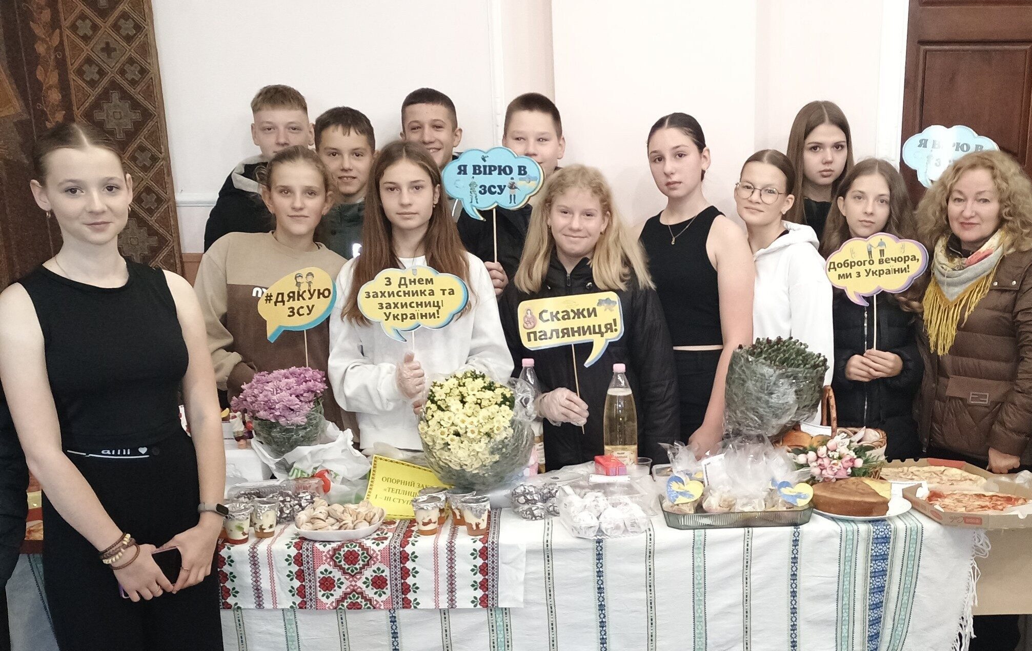 До доброї справи долучилися учні, вчителі та батьки, об’єднавшись задля спільної мети — допомоги українським захисникам. Представляти школу на ярмарку у Будинку культури випала честь учням 8-А класу та їх класному керівнику Олені Заіці. Вже втретє цей клас продемонстрував найбільшу виручку серед учасників.