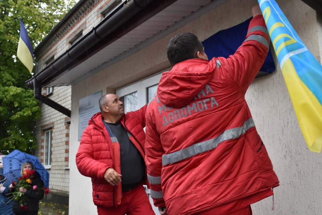 У Тростянці вшанували пам’ять Героя — Захисника України Юрія Гаврищука. Меморіальну дошку встановили на будівлі Відділення екстреної медичної допомоги, де він працював до повномасштабного вторгнення.
