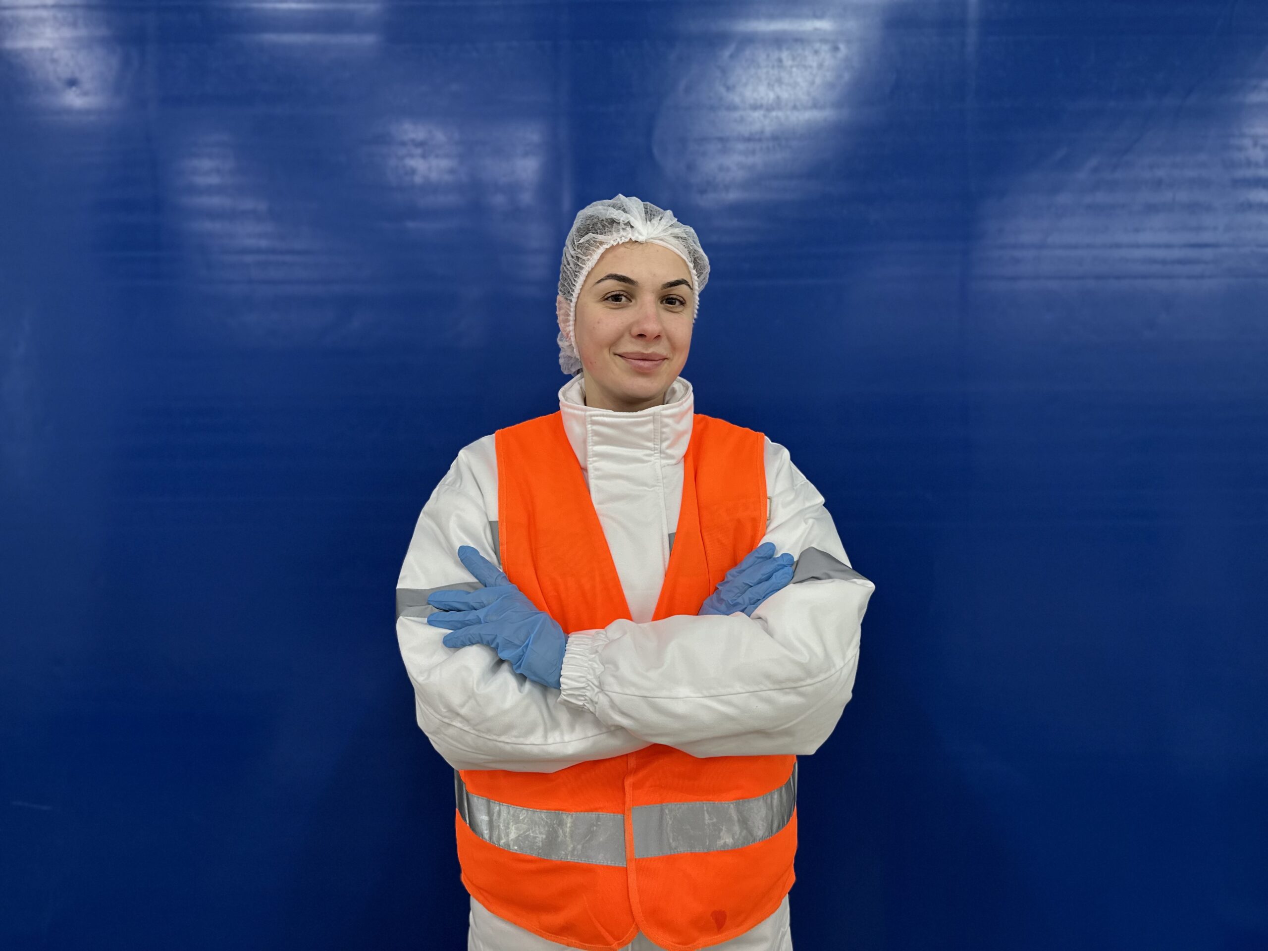 Олександра Юрченко працює водійкою навантажувача-штабелера на Переробному комплексі Вінницької птахофабрики. Свою роботу вона називає «своєю справою» — без пафосу, але з відчуттям упевненості й стабільності. Каже, що їй подобається і сам процес, і команда, і умови праці. А головне — відповідальність, яку вона щодня бере на себе.