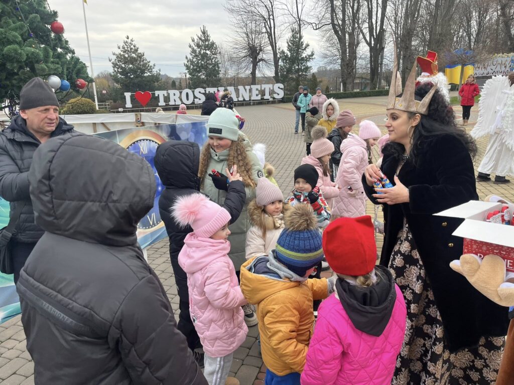 Святковий захід супроводжувався веселими хороводами, появою казкових героїв та пригощаннями від Тростянецької селищної територіальної громади. Щасливі дитячі усмішки стали найкращою нагородою для організаторів свята. Діти із захопленням роздивлялися вогники на ялинці, брали участь у конкурсах та отримували солодкі подарунки. Атмосферу свята доповнили святкові пісні та невеликі театральні вистави, які організували працівники Тростянецького центру культури та дозвілля.