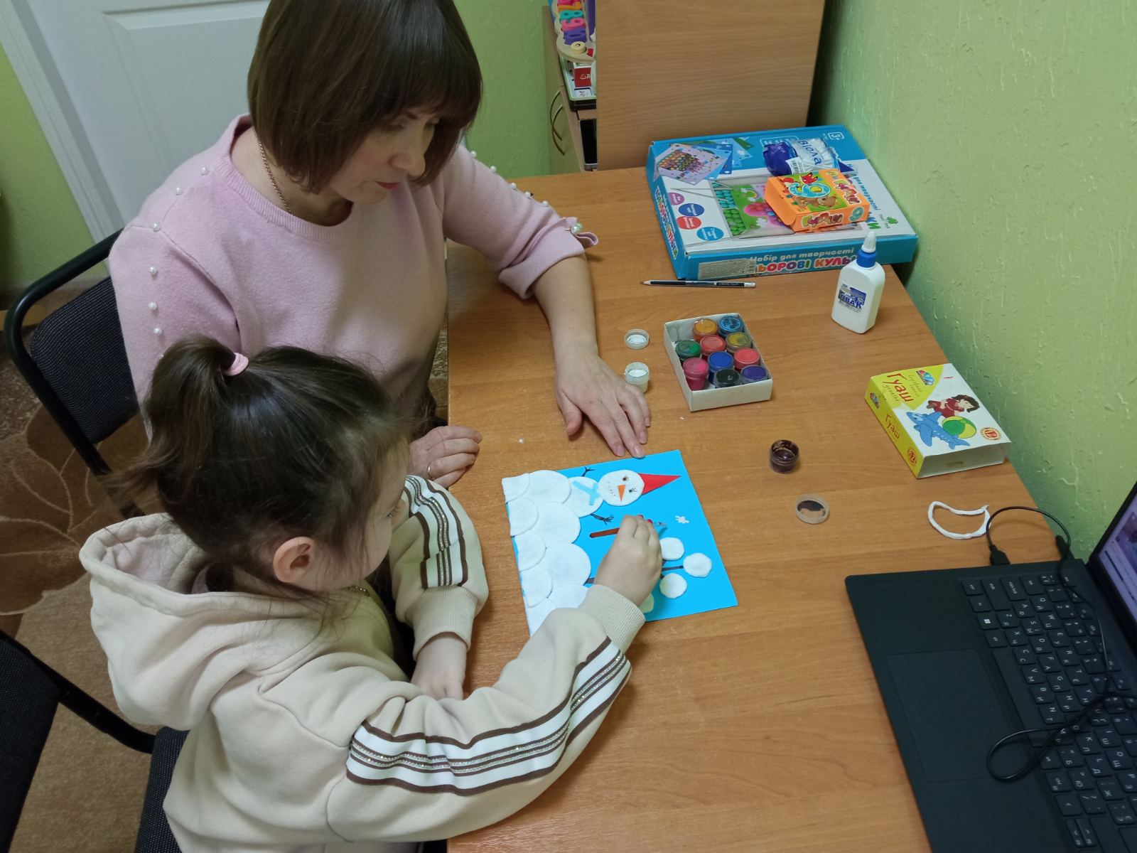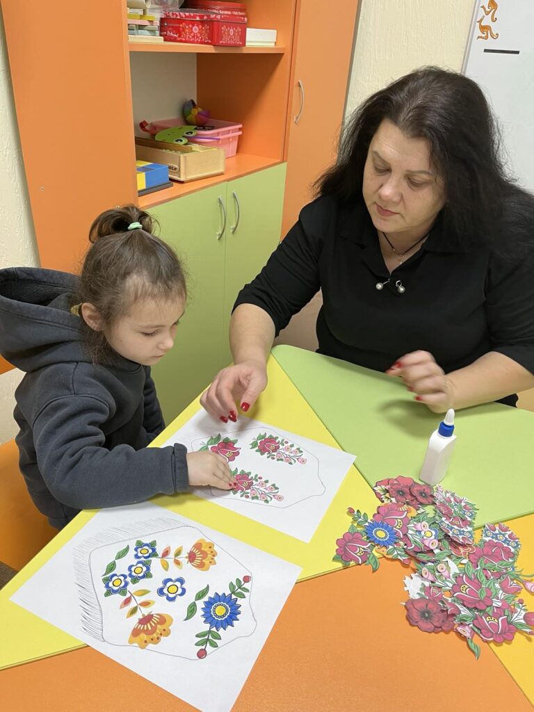 Під час занять діти виконують аплікації та інші творчі роботи; навчаються послідовності дій і вмінню зосереджуватися; закріплюють знання про кольори, форми та кількість; розвивають координацію, мовлення та навички самостійності.