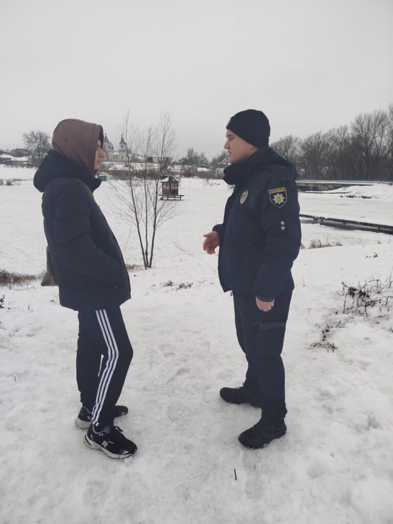 Під час проведення заходів поліціянти поспілкувалися з дітьми та дорослими, провівши профілактичні бесіди щодо дотримання правил безпеки під час перебування поблизу замерзлих водойм. Правоохоронці наголосили, що вихід на кригу є вкрай небезпечним, адже її міцність може бути нерівномірною й непередбачуваною.