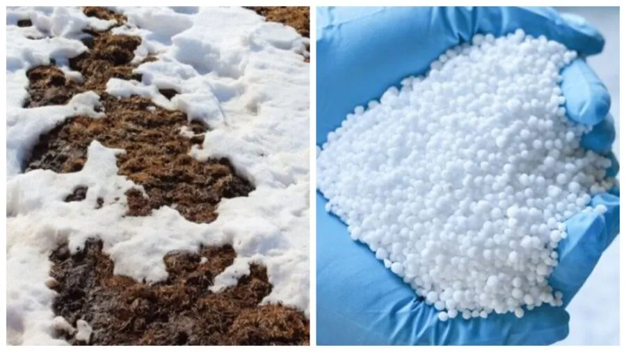 Якщо снігового покриву небагато, злегка притопчіть поверхню, щоб суміш не розніс вітер. Навесні, разом із талою водою, поживні речовини проникнуть у ґрунт саме на ту глибину, де їх чекатиме коріння.